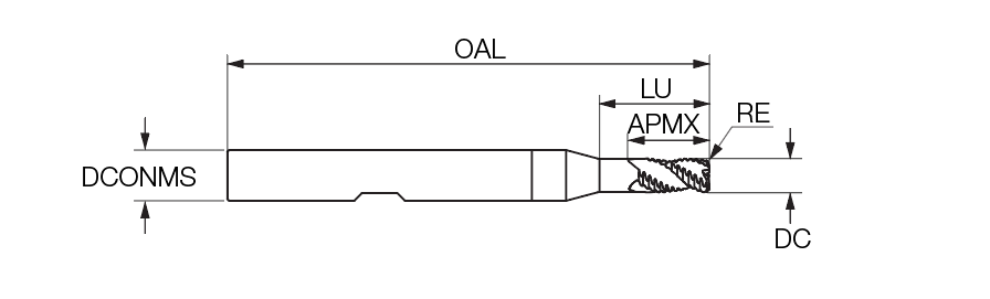 | Designation | DC | APMX | LU | DCONMS | NOF | OAL | RE | Shank  | GICAT | GIREM | giic | Grade & Vc |