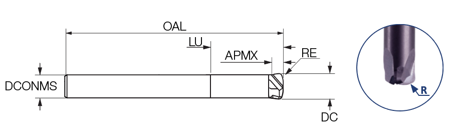 | Designation | DC | APMX | LU | DCONMS | NOF | OAL | RE  | Shank  | GICAT | GIREM | giic | Grade & Vc |