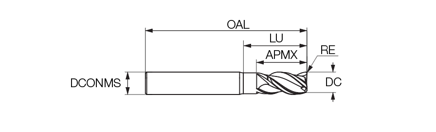 | Designation | DC | APMX | LU | DCONMS | NOF | OAL | RE | Shank  | GICAT | GIREM | giic | Grade & Vc |