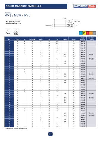 SOLID CARBIDE ENDMILLS EVH