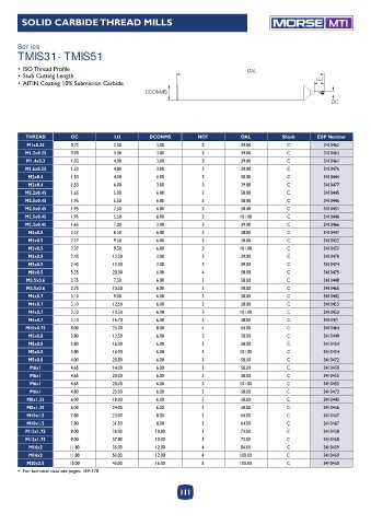 THREAD DC LU DCONMS NOF OAL Shank EDP Number