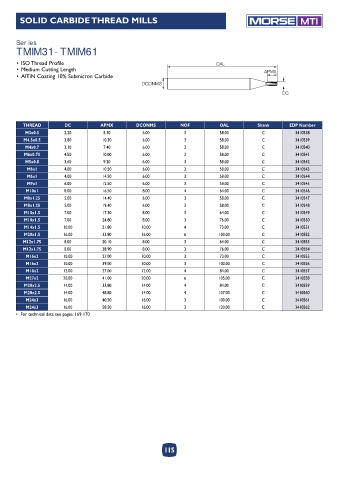 SOLID CARBIDE THREAD MILLS MTI
