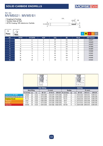 Vc (m/min) ap ae Ø 6-8 Ø 10-12 Ø16-20 Vc (m/min) ap ae Ø 6-8 Ø 10-12 Ø16-20