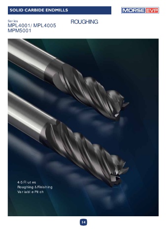SOLID CARBIDE ENDMILLS EVP Series ROUGHING MPL4001 / MPL4005 MPM5001 4-5 Flutes Roughing & Finishing Variable Pitch 14