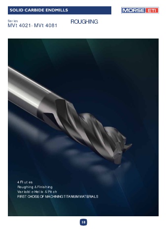 SOLID CARBIDE ENDMILLS ETI Series ROUGHING MVt4021 - MVt4081 4 Flutes Roughing & Finishing Variable Helix & Pitch FIRST CHOISE OF MACHINING TITANIUM MATERIALS 18