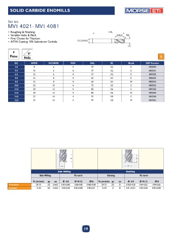 Vc (m/min) ap ae Ø 6-8 Ø 10-12 Ø16 Vc (m/min) ap ae Ø 6-8 Ø 10-12 Ø16