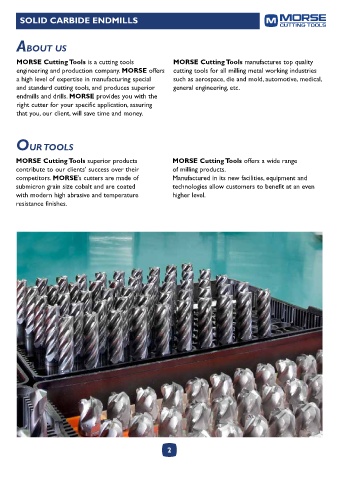 engineering and production company. MORSE offers cutting tools for all milling metal working industries