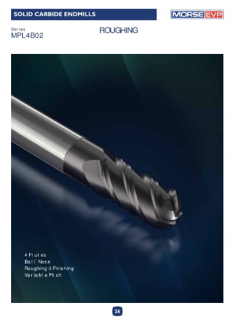 SOLID CARBIDE ENDMILLS EVP Series ROUGHING MPL4B02 4 Flutes Ball Nose Roughing & Finishing Variable Pitch 26