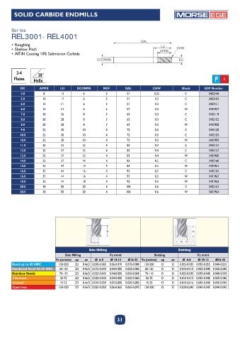 Vc (m/min) ap ae Ø 6-8 Ø 10-12 Ø16-25 Vc (m/min) ap ae Ø 6-8 Ø 10-12 Ø16-25