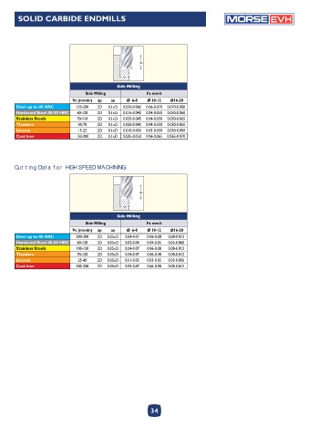 Vc (m/min) ap ae Ø 6-8 Ø 10-12 Ø16-20