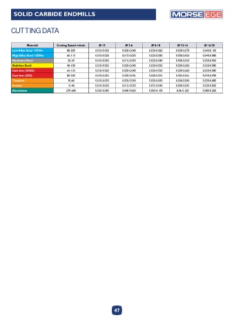 Material Cutting Speed m/min Ø <3 Ø 3-6 Ø 8-10 Ø 12-16 Ø 16-20