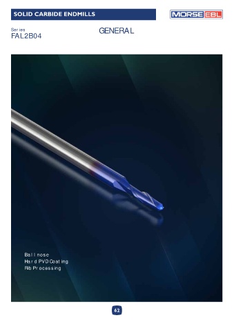 SOLID CARBIDE ENDMILLS EBL Series GENERAL FAL2B04 Ballnose Hard PVD Coating Rib Processing 62