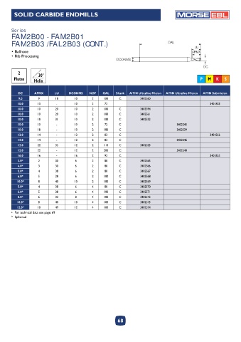 DC APMX LU DCONMS NOF OAL Shank AlTiN Ultrafine Micron AlTiN Ultrafine Micron AlTiN Submicron