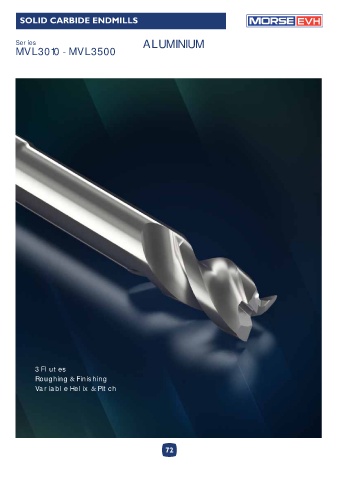 SOLID CARBIDE ENDMILLS EVH Series ALUMINIUM MVL3010 - MVL3500 3 Flutes Roughing & Finishing Variable Helix & Pitch 72