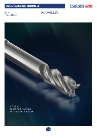 SOLID CARBIDE ENDMILLS EVH Series ALUMINIUM FVL4020 4 Flutes Roughing & Finishing Variable Helix & Pitch 74