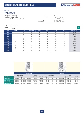 Side Milling Fz mm/t Side Milling Fz mm/t