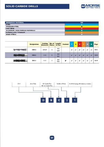 Designation Cutting No. of Length Coolant P M K S H N Page