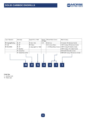 M- Roughing&Finishing A - 30° S- Short / Stub 2-10 B- Ball nose 0- Uncoated 10% Submicron Carbide