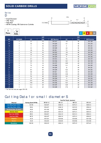 Cutting Data for small diameterS