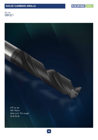 SOLID CARBIDE DRILLS DRC Series DBC21 2 Flutes 140° Point Coolant Through 3xD, 5xD 96